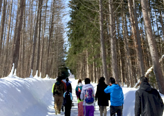 Going through the forest of Japanese larch and taking the view of Taisetsu Mountain at some distance, it's a 1hr walking course of the 3.5km hill where you can hear the echo. Please enjoy the fresh morning moment with the tour guide.